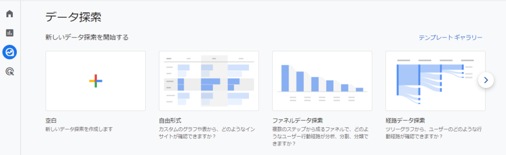 まずは、データ探索画面の一番左の「空白」を選択します。