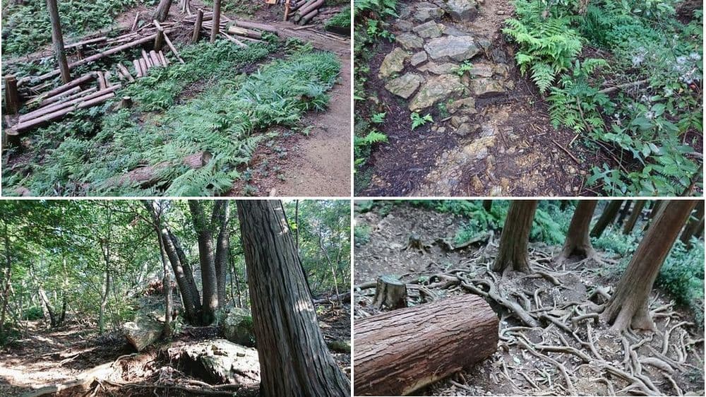男坂は大きな岩や木の根がむき出しになっている所が多くあります。途中、短いですが岩登りもあるのでグローブがあった方が安心かもしれません。